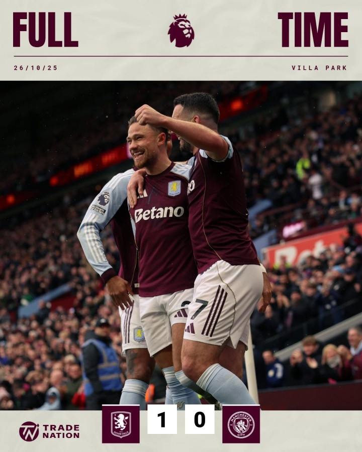 直播吧10月27日讯英超第9轮,阿斯顿维拉1-0力克曼城,豪取联赛4连胜。